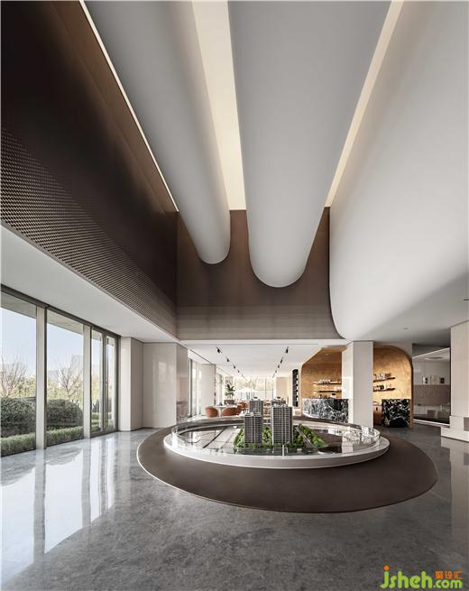 大堂的裝置藝術(shù),正是以唐詩“海上生明月”的意象定制。慈溪天安潯筑營銷中心設(shè)計(jì)通過巨大的球體,變色的釉彩,球體自然的波浪線,參觀者會(huì)不由自主地聯(lián)想到海浪翻滾、清輝涌動(dòng)的力量。