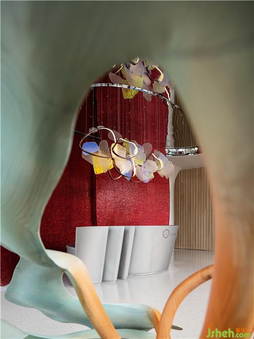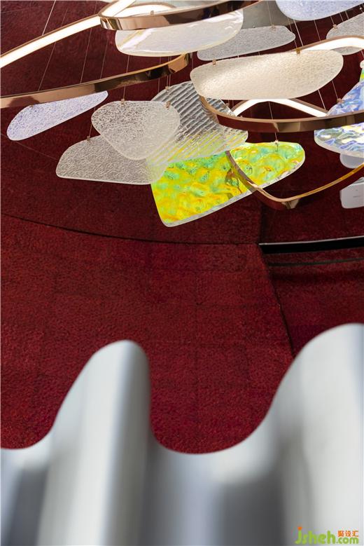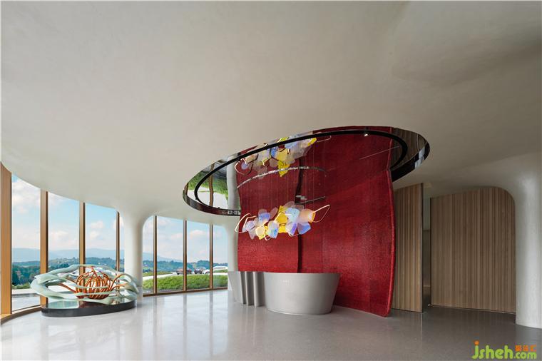 仿若水上芙蓉的陶瓷裝置,重慶營銷中心裝修設計呈現(xiàn)柔軟、優(yōu)雅的科技之美。