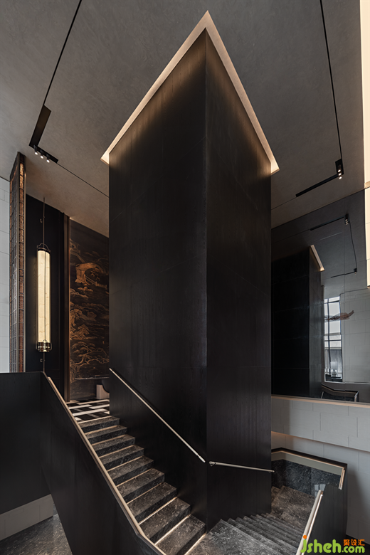 光與影在空間中不同層次的藝術(shù)表達(dá),令人愉悅,扣人心弦。萬物與藝術(shù)的對(duì)話,因應(yīng)自然,為空間賦予了自由的靈魂。樓梯以向上的姿態(tài),指引空間精神本質(zhì),木飾面與奢石的塊面構(gòu)成,彼此穿插,為空間構(gòu)建視覺與感官的雙重享受。