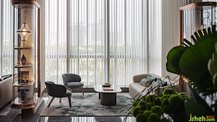 細膩的墻面紋理組合靈動通透的裝飾柜,隔出靜謐洽談區(qū),一束柔和的陽光從窗簾縫隙中灑下,無論是清晨的陽光還是傍晚的余暉,這個角落都散發(fā)著一種寧靜的美感,提供了一個舒適、愜意、私密的洽談空間。
