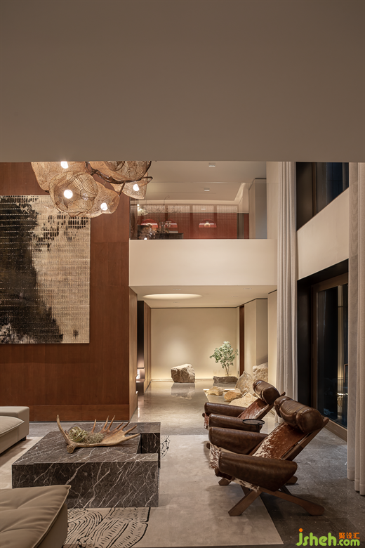 空間中融入中古風(fēng)家具,將其與現(xiàn)代風(fēng)格進(jìn)行時(shí)空交織,從時(shí)間、空間、風(fēng)格等方面詮釋野奢靈魂。自然肌理與現(xiàn)代材質(zhì)相互兼容,家與山野的完美結(jié)合,久居城市中央,面對(duì)一切當(dāng)下,走去或歸來(lái),天地間的廣闊在家這片原野無(wú)限展開(kāi)。