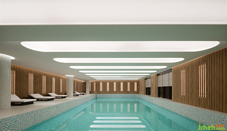 以極簡的設(shè)計(jì)美學(xué)營造出簡潔大氣的游泳館,光影的韻律透過格柵形成陣列式的美感,天花板上的燈光如同水波紋層疊排列,映襯于水面上,形成充滿律動(dòng)的漣漪。