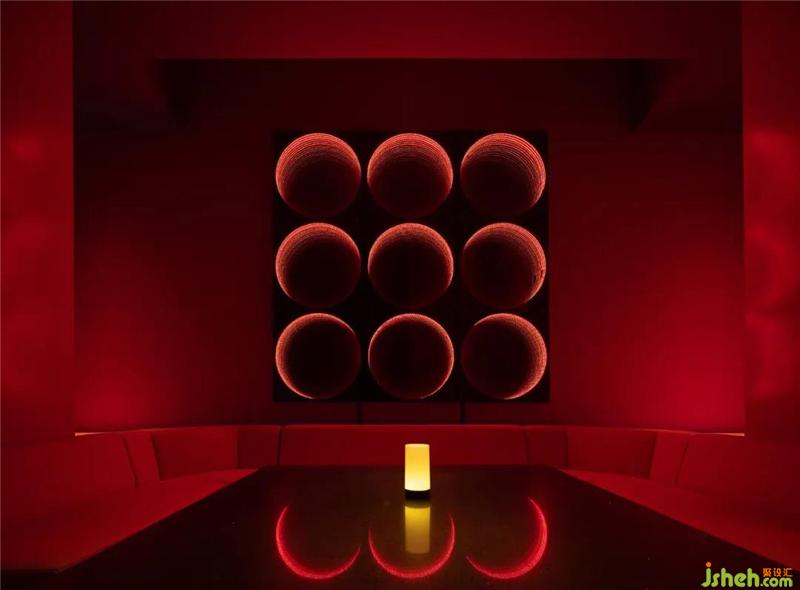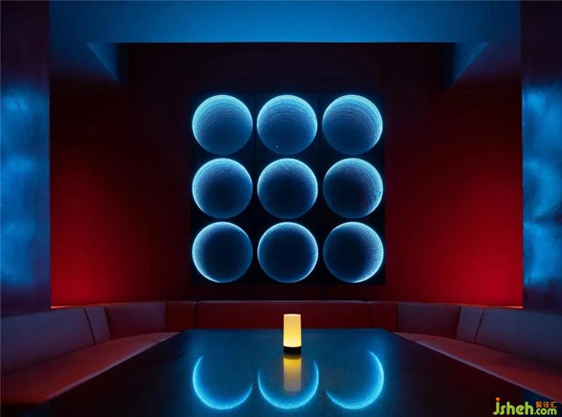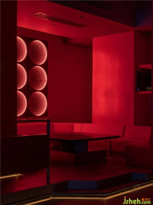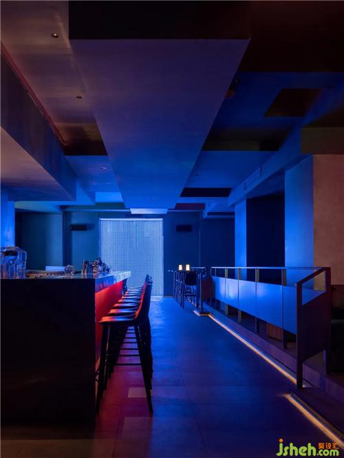 在對(duì)梁體和管道進(jìn)行包覆之后,就自然形成了層層疊疊的體塊關(guān)系。凹洞內(nèi),加入彩色的燈光酒吧裝修設(shè)計(jì),形成迷幻的“天窗”效果。