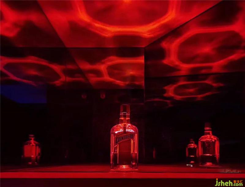 我們將這種體塊關(guān)系和層疊感運(yùn)用在了整體酒吧裝修設(shè)計(jì)當(dāng)中,比如刻意拉長(zhǎng)吧臺(tái)的跨度,以突出它的核心作用;比如后吧臺(tái)的Logo墻,用陣列式的發(fā)光亞克力組合來(lái)加強(qiáng)消費(fèi)者的視覺(jué)印象。