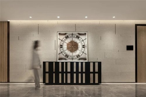 We use this kind of block relationship and layering in the overall space design,such as deliberately lengthening the span of the bar to highlight its core role;for example,the logo wall of the back bar uses array type luminous acrylic combination to enhance the visual impression of consumers.