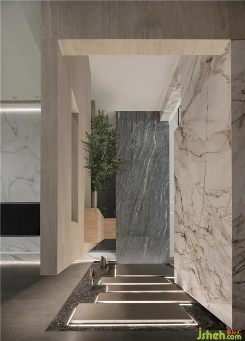有時候也會離家遠(yuǎn)行,遇見了許多美好,想全部帶回你私享的這片天地?!扒訋r”就好像大地的肌理,展廳裝修設(shè)計你把心里的那棵樹種在了一進(jìn)門就能看到的地方。