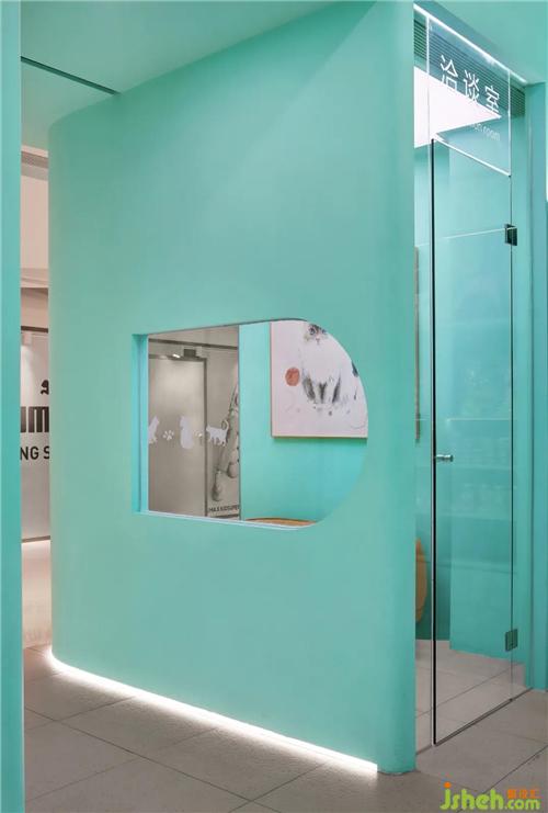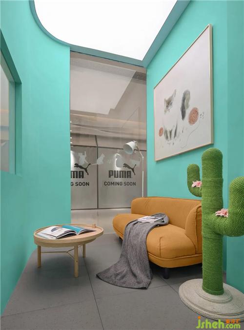 會(huì)客室提供了一隅之地,均勻的燈光灑下,店鋪裝修設(shè)計(jì)是擼貓的最佳地理位置。