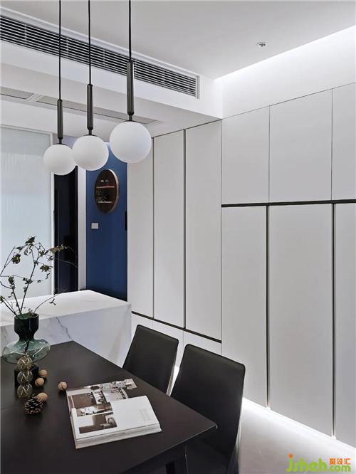 玄關(guān)之內(nèi),一墻銀鏡,反射出雙倍的線性光。裝修設(shè)計(jì)復(fù)行十步,豁然開朗,這是生活的明度。