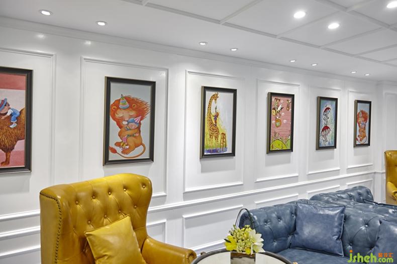 英式風(fēng)格追求精致手工藝設(shè)計(jì),講究作品的精雕細(xì)琢,照片墻、版畫、定制的口腔類雕塑等工藝品也是本案室內(nèi)設(shè)計(jì)的一大特征,藝術(shù)氣息特別濃厚。