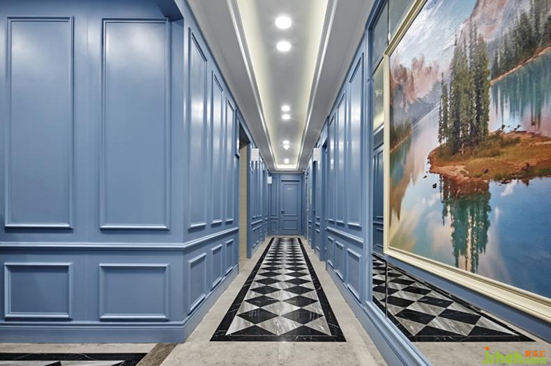 一層強(qiáng)調(diào)英倫的雅致及品位,用淺藍(lán)色歐式墻面穿插整個空間,強(qiáng)列的空間視角關(guān)系,讓客戶流連忘返,記憶深刻,達(dá)到商業(yè)醫(yī)院經(jīng)營的目的。