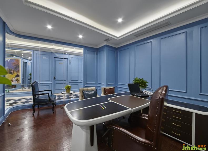 曲折蜿蜒的走廊里,鏡面與油畫結(jié)合的墻面、大塊玻璃的運(yùn)用,使得原本枯燥的走廊增添一份空間感。