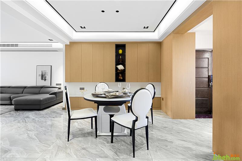 主材:木飾面板、進(jìn)口巖板、水泥漆、黑色不銹鋼線、進(jìn)口大理石