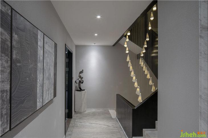 光是唯一能使建筑成為藝術(shù)的,手工定制藝術(shù)吊燈的暖光透過(guò)陶瓷薄片,溫柔光影變化,賦予建筑形態(tài)樓梯別樣意義。似是將造物主的那束光射向觀者心房,