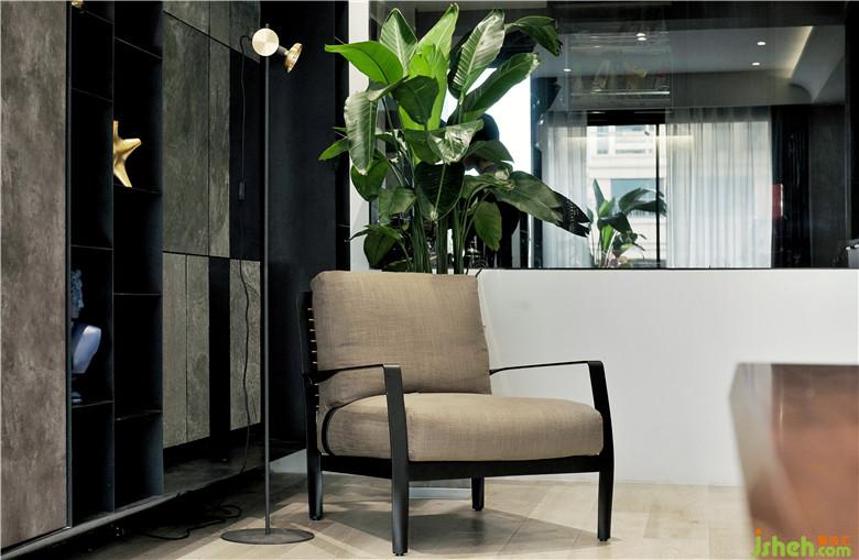 客餐廳、書房、休閑區(qū)不砌墻,室內(nèi)設(shè)計師將這四個功能區(qū)融合進一個空間,相互間有隔斷,但能做到不阻斷視線。