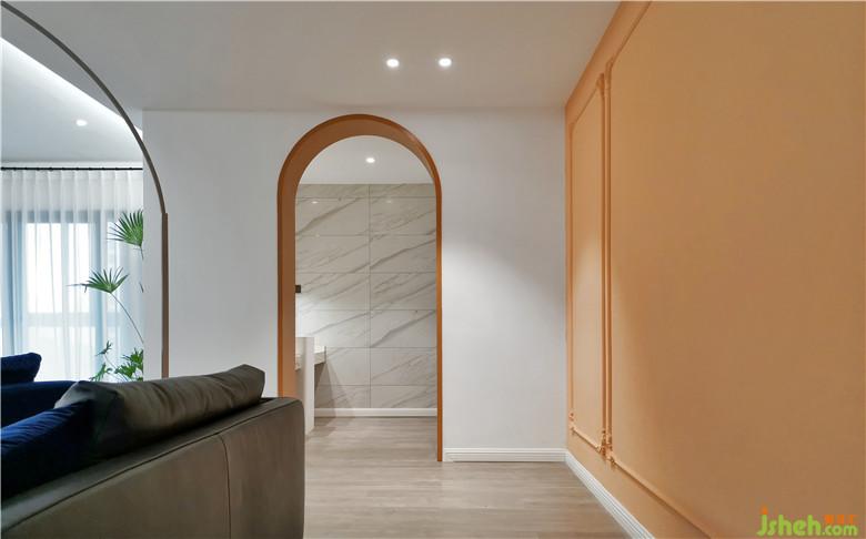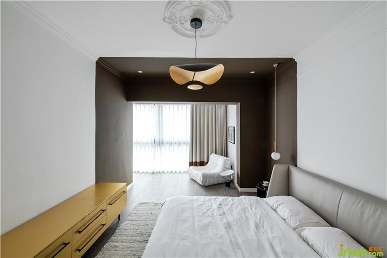 兩個(gè)都可作主臥的房間僅保留一個(gè),其中一個(gè)主臥內(nèi)衛(wèi)并到公共區(qū)域,并將主臥空間推出一半,另一半做步入式衣帽間。