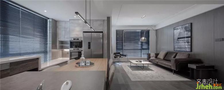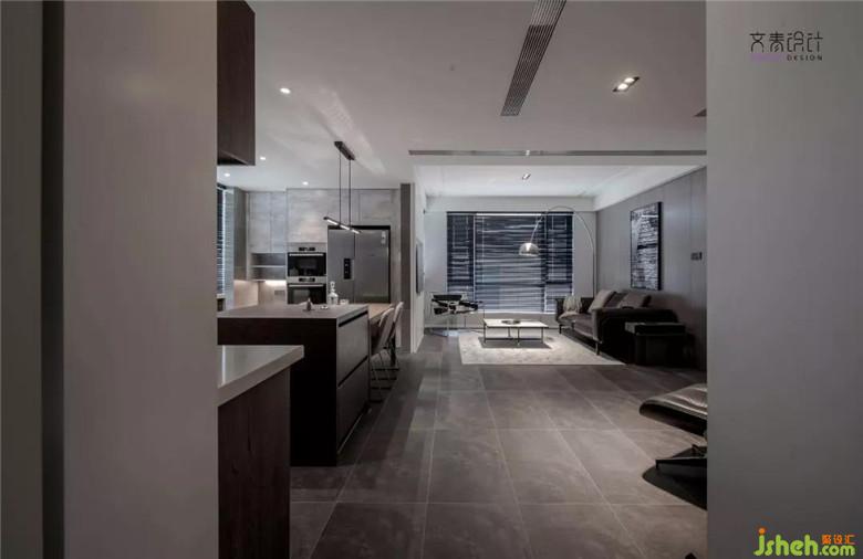 灰色的瓷磚,質(zhì)感很強(qiáng)烈,整體深色調(diào)能保持在一個(gè)色系內(nèi)。