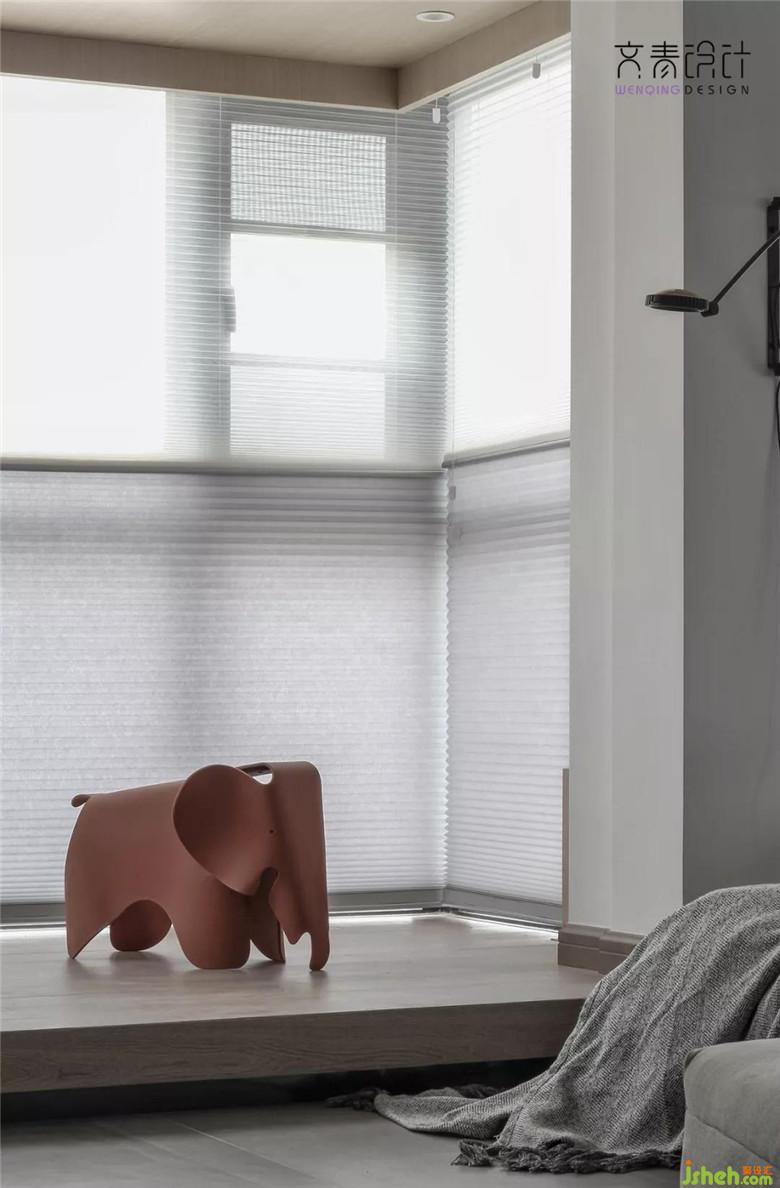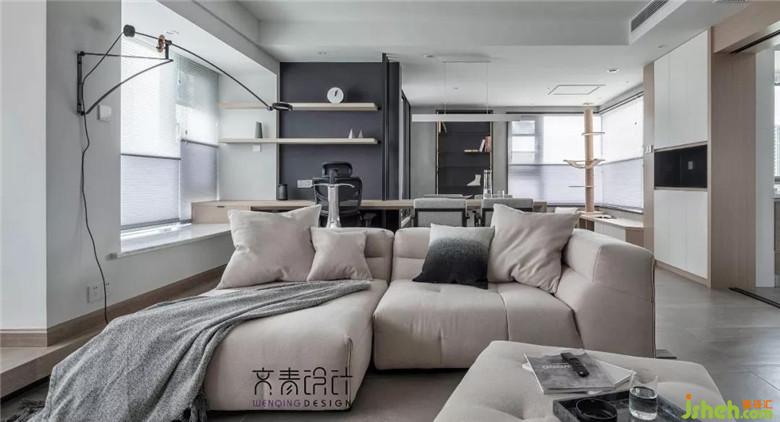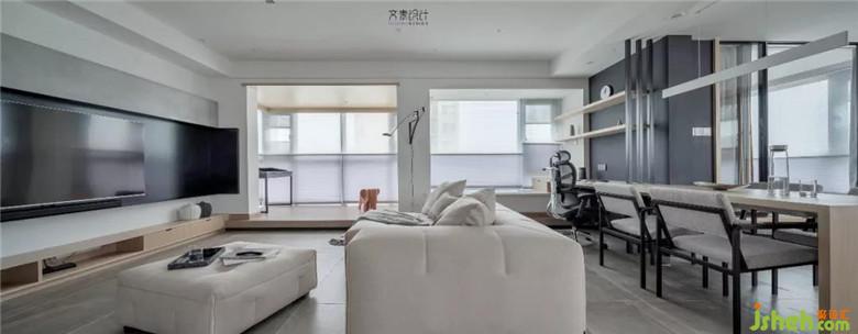 將客廳處的陽臺內包,用抬高層來與客廳做區(qū)域隔斷。在這里,他可以在陽光中做些簡單的文字工作,閱讀等。