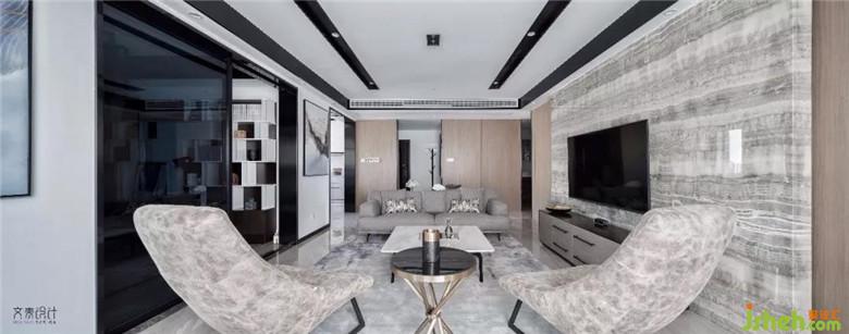 與客廳相鄰的,便是這略帶禪味的書房,冷暖交匯,簡約大氣。