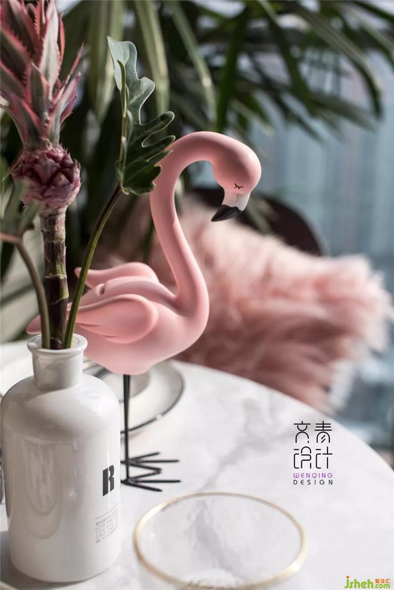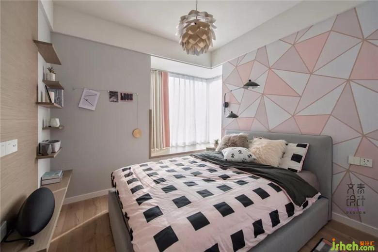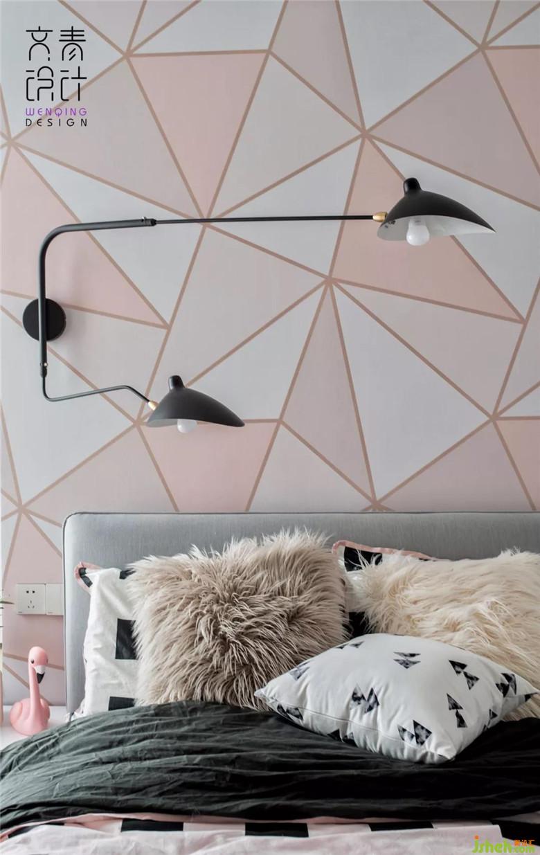 床頭貼上的粉色三角逅舍墻紙讓臥室眼前一亮,淡淡的透露著雅痞的不羈,讓人不由得想探求,此中掩藏的魅惑;不規(guī)則搭配著左側(cè)的鴨嘴雙壁燈,靈動之處又消減了一絲濃重,相對勾勒出一點俏皮感和青春感,呈現(xiàn)了如主人般知性優(yōu)雅的氣質(zhì)。