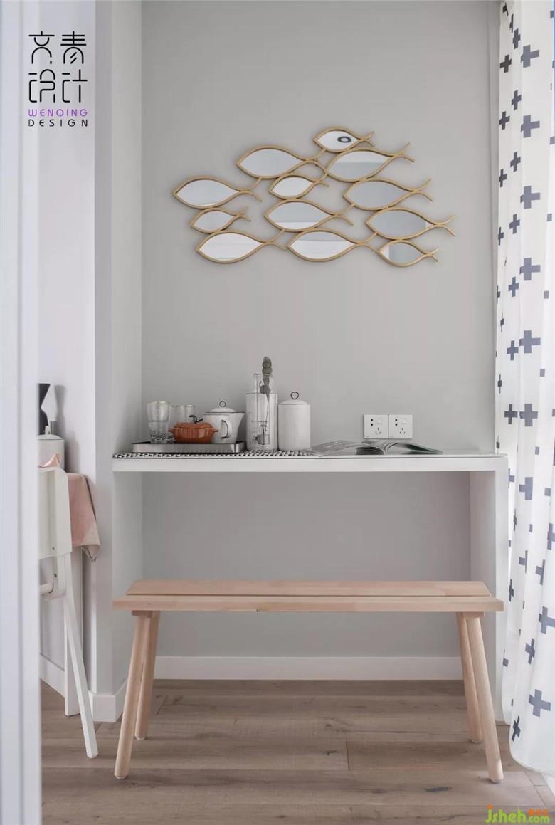 小群大人晚上不太喜歡看見鏡子,所以在設計洗漱臺的時候,特意定制了一面獨一無二的可翻轉(zhuǎn)的小圓鏡,在鏡子的背面,還留下了溫情的留言。小群大人說,每次夜深人靜時入眼的這個畫面,都有一種來自內(nèi)心特別踏實柔然的感覺。一份小定制,的確就可以釋放出莫蘭迪少女式簡單寧靜的氣氛。
