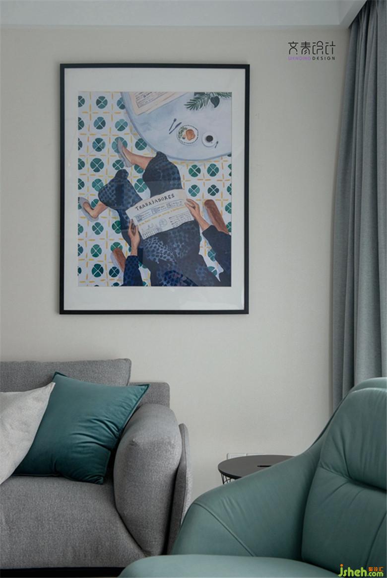 由于硬裝上沒有做改動(dòng),因此在家具、窗簾盒裝飾畫的選擇上,加入多色系的元素。顏色選擇上多用莫蘭蒂色調(diào),整體的飽和度還是偏低的,這樣整體感覺會(huì)更融洽。