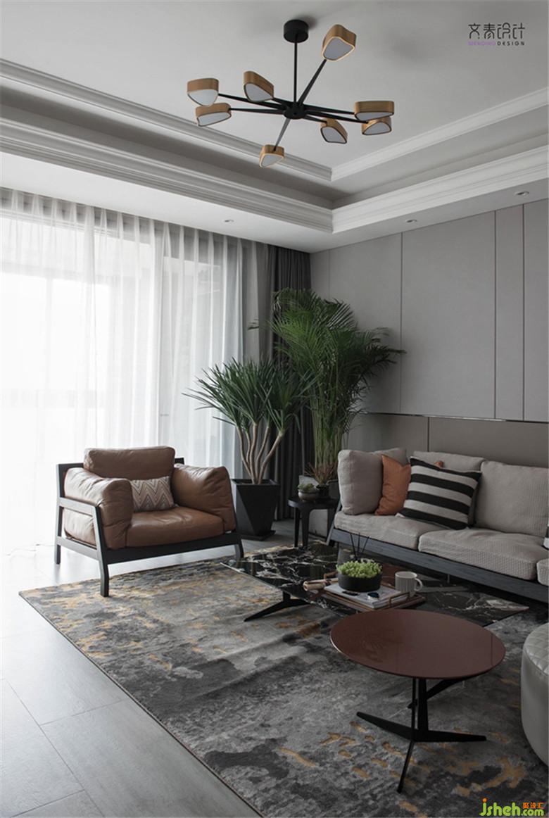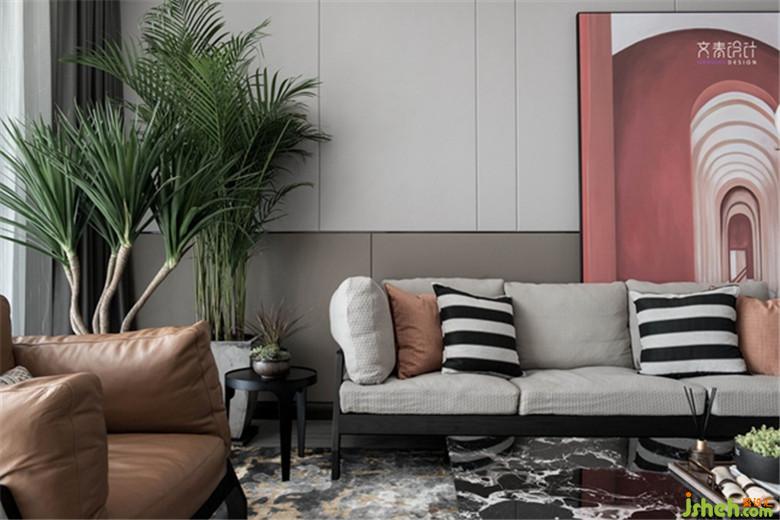 客廳背景墻硬包用不規(guī)則比例劃分出線條,變化得更具層次感。