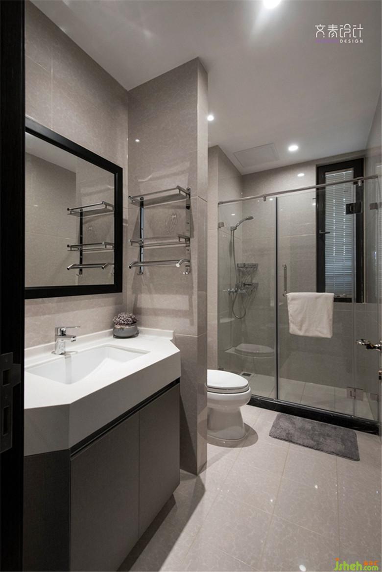 地磚,由原先的米白色地磚拼接黑色地磚改成了淺灰色木紋磚,去掉了黑色線條和不必要空間區(qū)隔線條,使得整個空間更加流暢。。