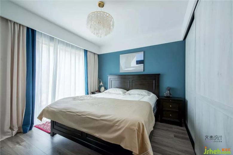 床和床頭柜的組合,皆是線條硬朗,色彩穩(wěn)重復古的造型。清早起床,是北美鄉(xiāng)村的精致感。
