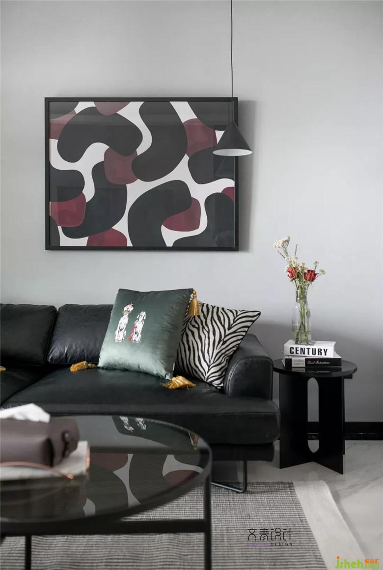 電視背景墻是原硬裝做的防水泥板墻,問(wèn)題不大就沒(méi)做改動(dòng)??蛷d空間整體搭配比較利落大氣,同時(shí)輔以綠植,掛畫,家具跳色細(xì)節(jié)點(diǎn)綴。