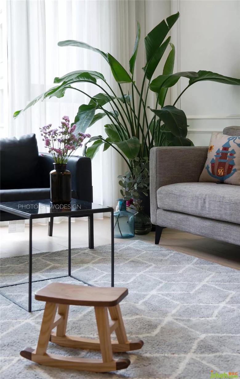 角落的天堂鳥(niǎo)是大葉子類(lèi)型的綠植,將窗外的綠野自然地過(guò)度到室內(nèi)。