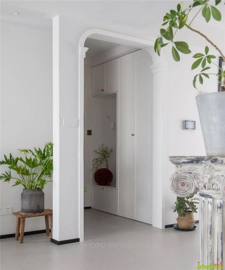 門廳處特意加了一處圓弧門造型,不論是回家的儀式感,還是視覺效果,都是十足的贊。