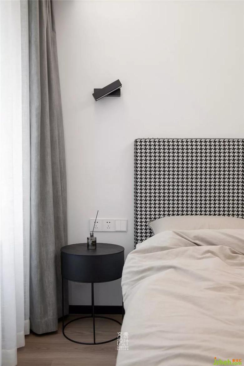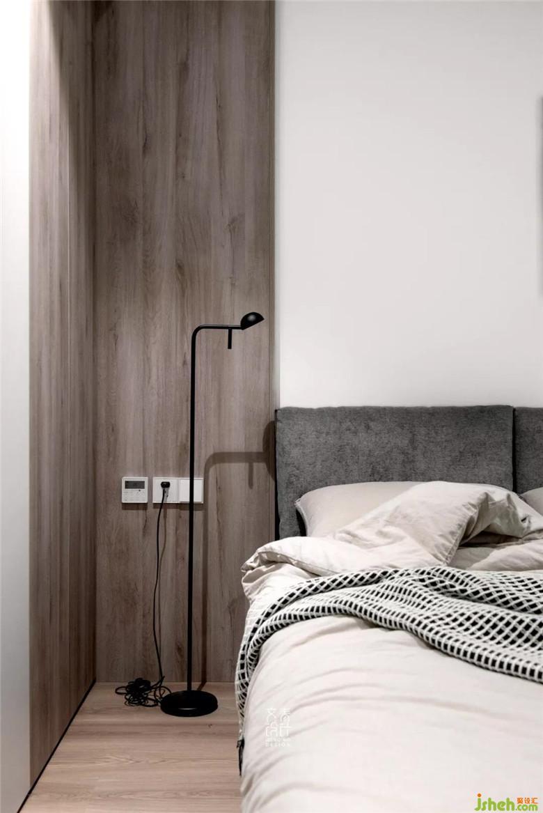 女業(yè)主習(xí)慣在臥室化妝,在主臥有限的空間里,再騰出一個桌位比較困難,因而在主臥進(jìn)門處定制出一個斜桌用作梳妝臺,其插入衣柜的設(shè)計也稍顯新意。