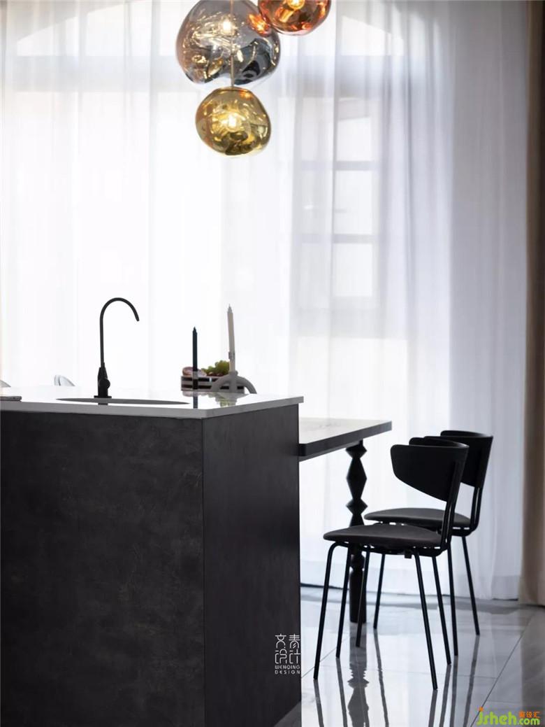 移出廚房的帶洗手池的中島、蒸烤箱、水吧臺(tái),分擔(dān)出廚房的一大部分功能,這個(gè)餐廳儼然又是一個(gè)西式廚房。