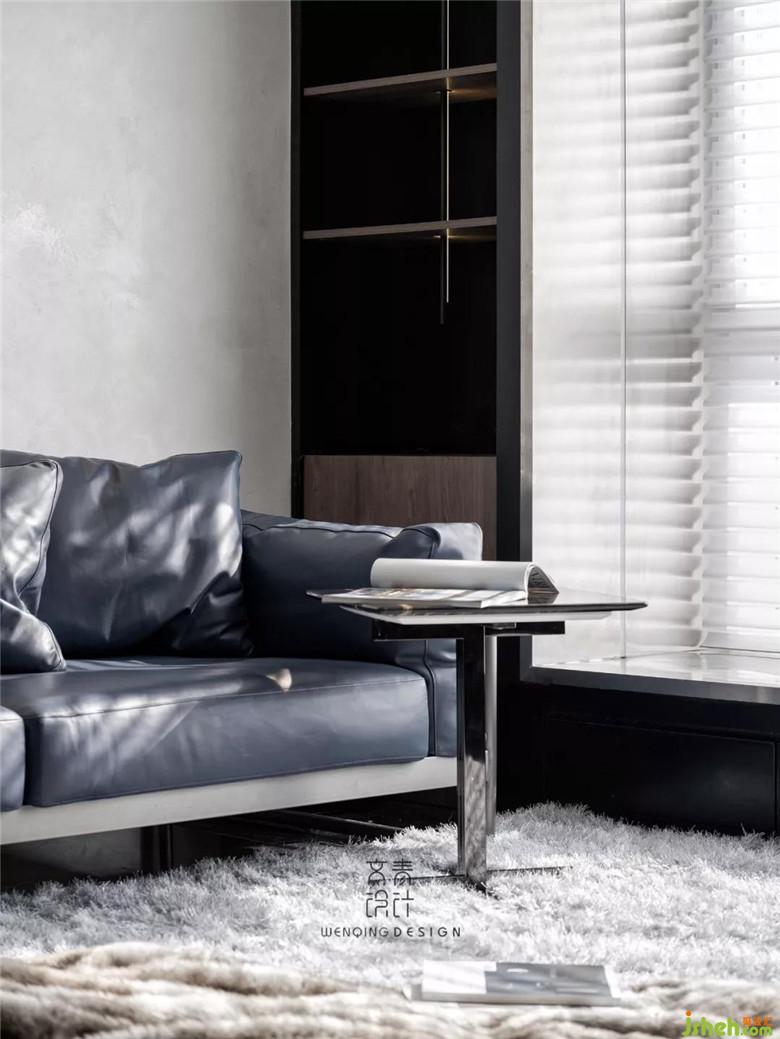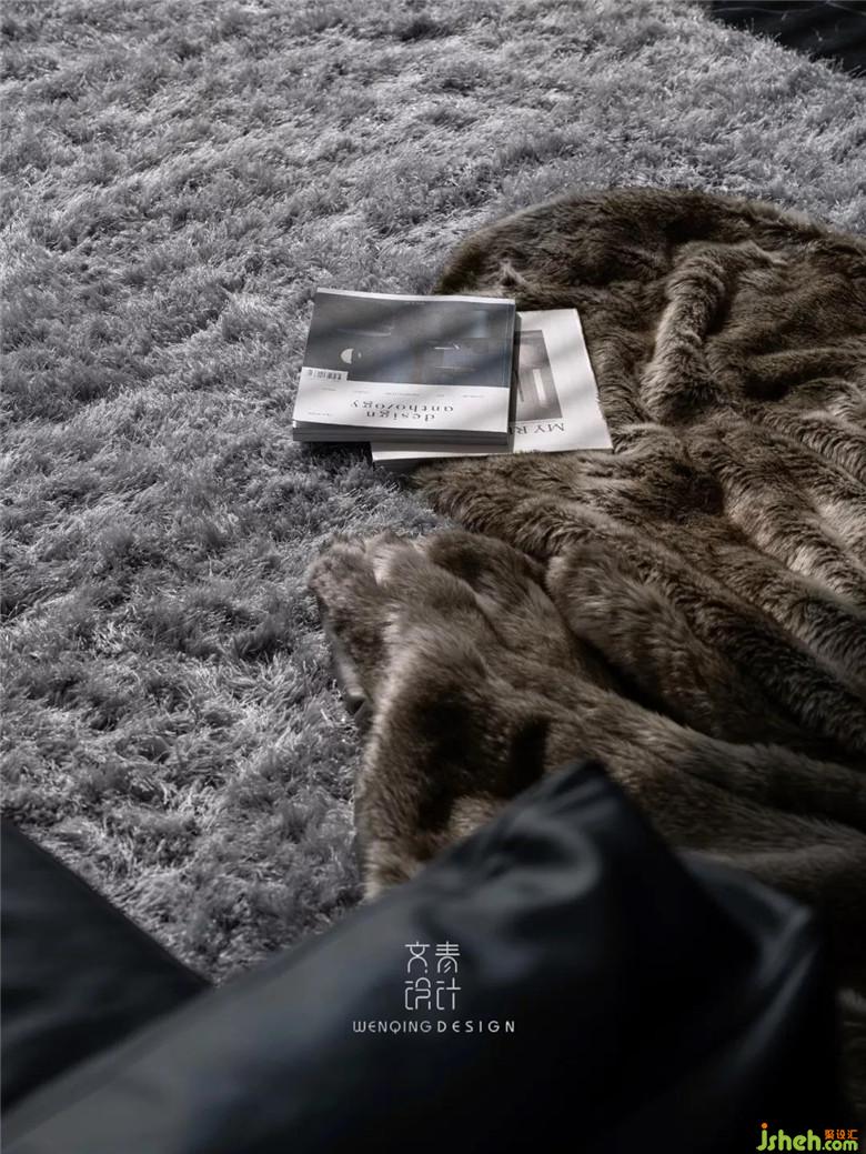 靜謐、硬朗,甚至是冰冷的確是主基調(diào),但也不僅僅只是這樣。透過百葉柔和的陽光,綿軟絲滑觸感的地毯,角落影影約約漫出的燈,這些組合就像冬日木屋的篝火,一絲一絲去浸潤,而后溫暖。