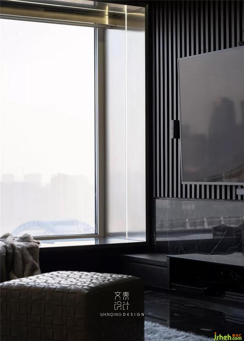 飄窗也是用不銹鋼包邊,一圈包邊里還鑲嵌了一圈氛圍燈帶。