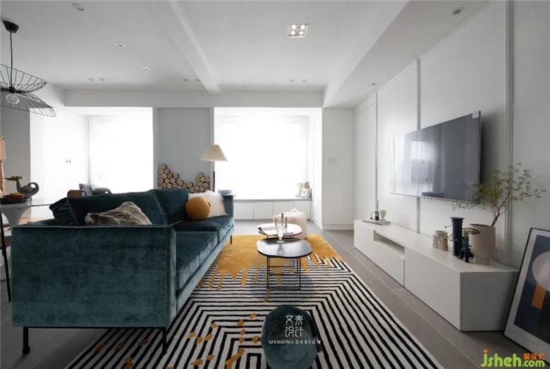 裝修公司考慮到業(yè)主鐘愛蒂芙尼藍,又偏愛莫蘭迪色系,客廳的沙發(fā)正好將業(yè)主的“雙重喜好”結合,莫蘭迪色系自帶灰度,能讓空間顯得更加沉穩(wěn)。