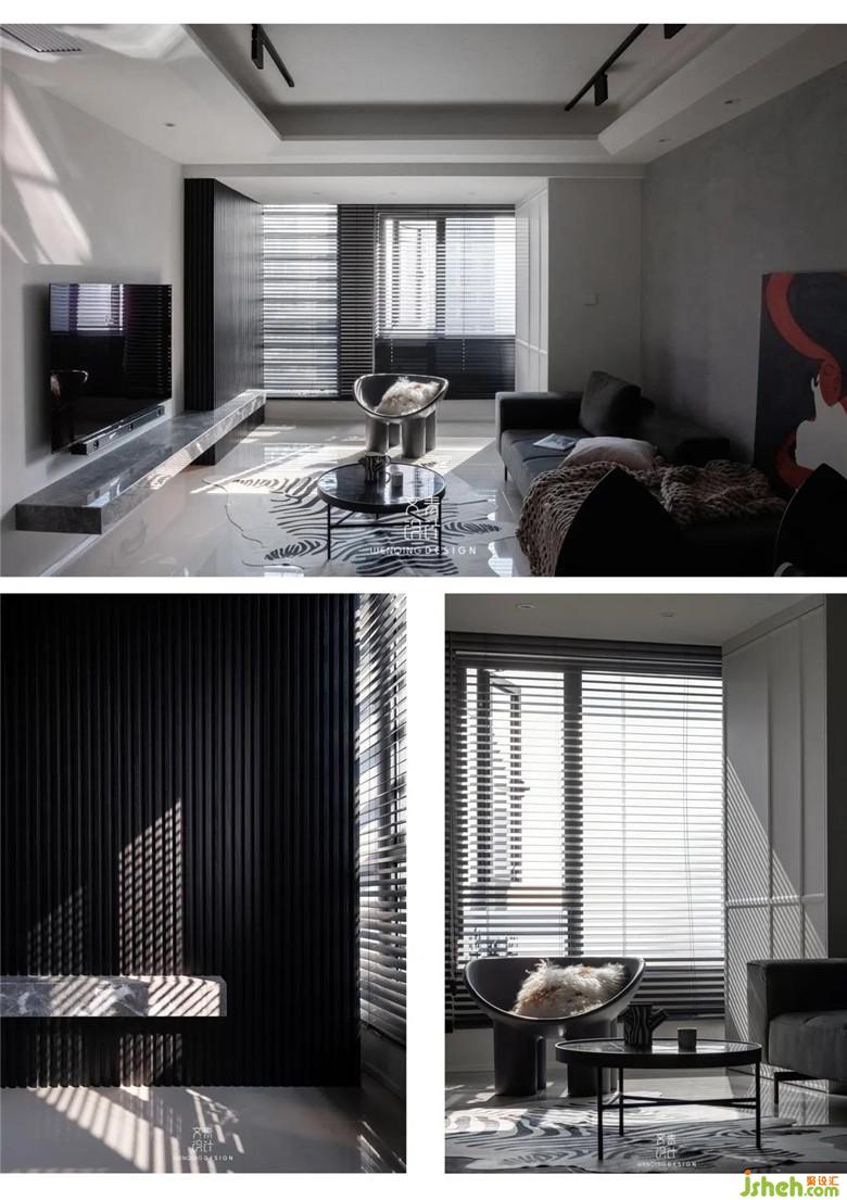 客廳做為公共空間,在整體配色方面還是以沉穩(wěn)為主,裝修公司木制格柵又能賦予空間設(shè)計感,陽光通過百葉窗折射進室內(nèi),投射格柵上的光影,這一刻陽光仿佛也被"抓住"。