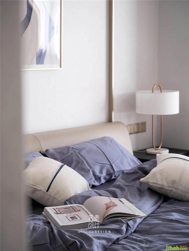 主臥延續(xù)了整體舒適的基調(diào),在床背景上我們做了一扇通往衣帽間的暗門,雖說主臥配備的衣帽間不大,儲物功能卻很實用,換季衣物都能有收納的地方。