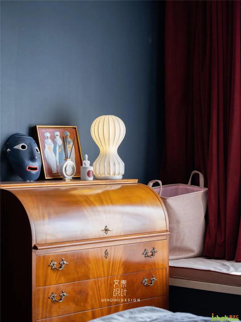 家中第三件中古家具就是臥室的秘書柜,現(xiàn)在成了女主人的梳妝柜,當初淘到這件秘書柜的時候,在抽屜中都還留著上世紀的使用痕跡,或許就是這樣的傳承,讓中古家具成了可以震撼內(nèi)心的物品。
