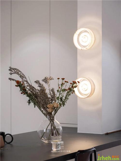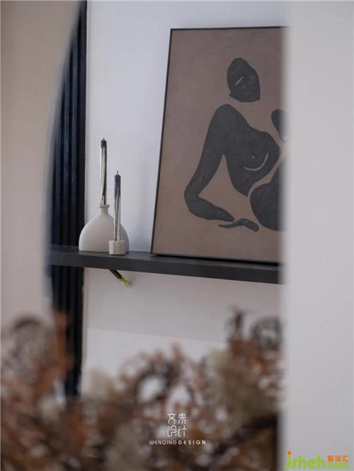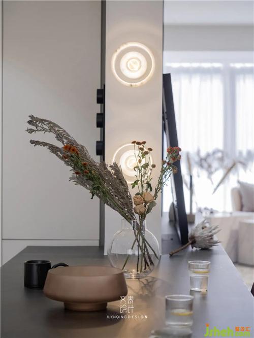 餐廳依承重墻定制餐桌,在玄關(guān)側(cè)做桌面延伸處理,入戶裝飾畫和小擺件都有了安放之處。
