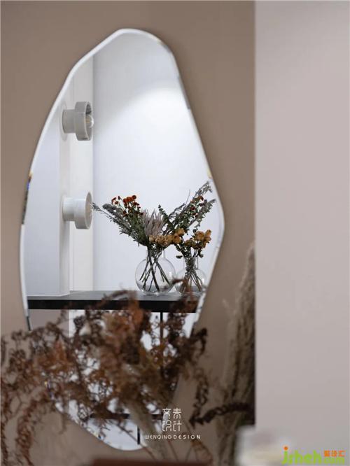 低飽和色彩的碰撞、柔軟的羽毛燈、圓弧的家具,杭州裝修設計整個空間在各種溫柔的元素交織下,顯得靜謐又溫馨。