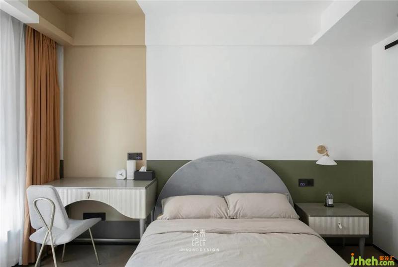 素雅的色調(diào)自然流淌于臥室空間,幾何色塊的組合碰撞,杭州裝修設計展現(xiàn)安寧與趣味并存的臥室空間。