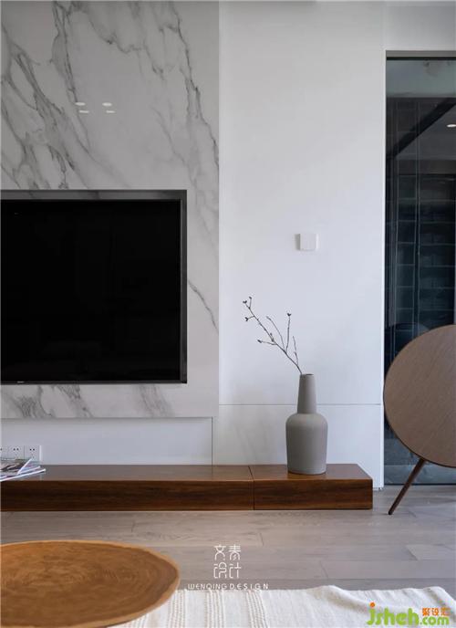 為了讓室內(nèi)外自然景觀更好的過(guò)渡,我們將原本陽(yáng)臺(tái)改造成做室內(nèi)庭院,采用推拉玻璃移門(mén)與客廳隔斷,杭州裝修設(shè)計(jì)不管功能還是動(dòng)線都能和客廳有序的串聯(lián)在一起。