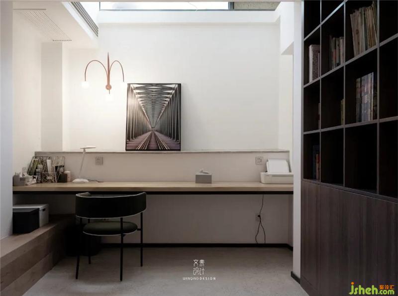 地下室工作區(qū)剛好布置在透光天窗下方,順著臺(tái)階延伸的地臺(tái),也能供人工作之余小憩一下。