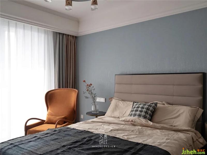 父母房因為只是業(yè)主媽媽睡,一米五的床就足夠了,床邊放置了舒適的吱音躺椅,當(dāng)孩子去上學(xué)后,一個人也可以愜意的躺在單椅上曬曬太陽。