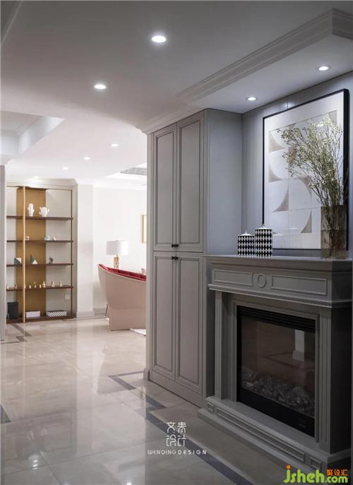 樓梯間作為承接空間的要塞,設(shè)置電子壁爐作為過道景觀,上下樓也能讓人賞心悅目,壁爐兩側(cè)和樓梯間都做成了儲物空間,杭州裝修設(shè)計滿足一家人的存儲。
