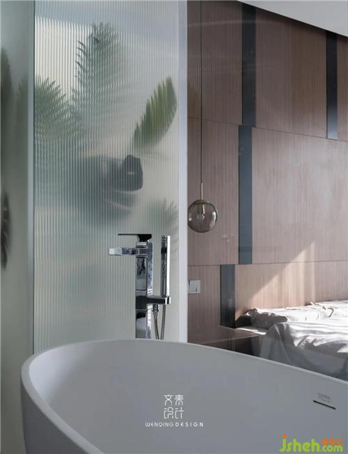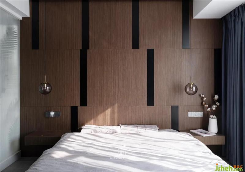 定制床頭柜將空間利用到極致,黑色木飾面線條穿插其中,看似錯(cuò)亂又整齊的關(guān)系,在這一刻體現(xiàn)的淋漓盡致。