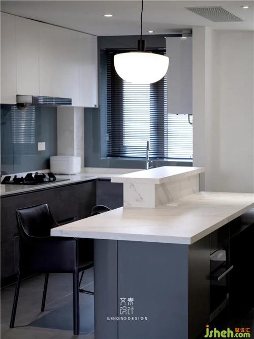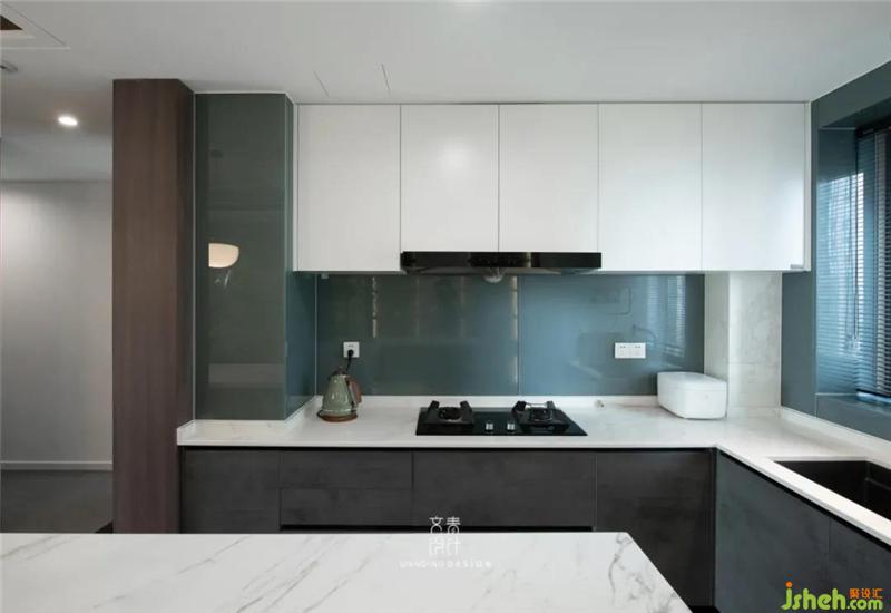 廚房墻面采用烤漆玻璃的材質(zhì),