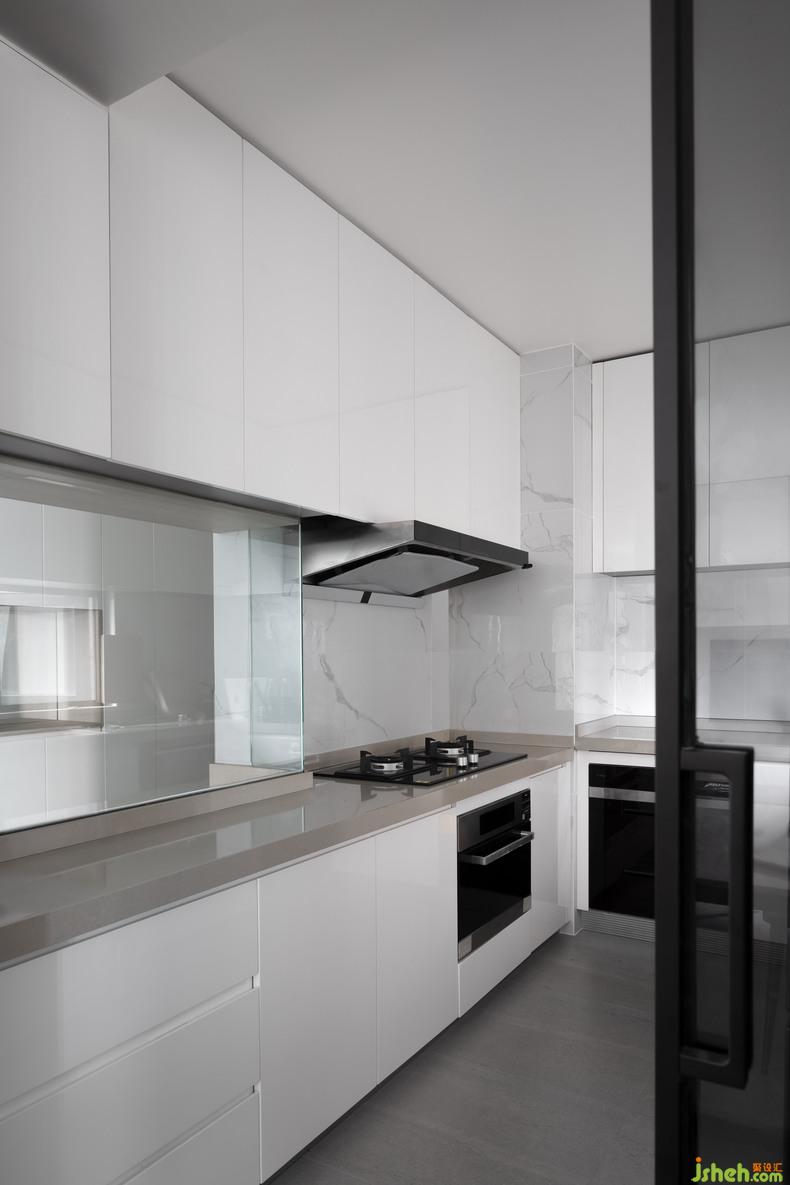 為保證廚房日間的光亮,設(shè)計師特意選用玻璃門作為廚房的隔斷。室內(nèi)設(shè)計師光線從客廳陽臺流入,點亮了空間,也點亮了人的心情。透明的隔門,既能防止因做飯產(chǎn)生的油煙侵?jǐn)_其他空間,方便日常的打掃清理;又能保證在廚房做事之時,能看到在餐廳或是客廳交談玩耍的朋友家人,在完成視覺上的自然過渡和連續(xù)性的同時,豐富人與空間、人與人之間的互動關(guān)系。