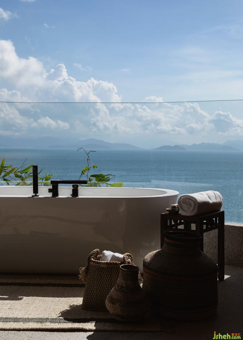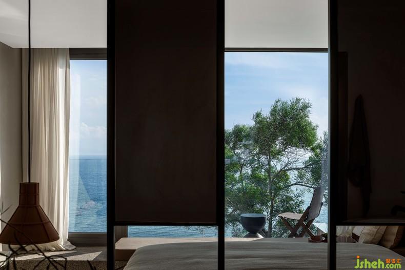 房間陽臺是另一種情緒,它將空間局限打破,向天空、向海洋延伸。清風(fēng)與光照毫無保留地在空間中流動,占據(jù)空間的每一個角落,與搶鏡入畫的山樹一同,構(gòu)建起新的空間秩序。視覺的高度與層次隨著每一次呼吸,酒店設(shè)計得到了立體化與豐富。身體在自然光景的滋養(yǎng)中,與空間場域發(fā)生了千絲萬縷的聯(lián)系。對于生活的美好,便在光影交織、一山一樹的藝術(shù)意境中,得到了全方位地感知。